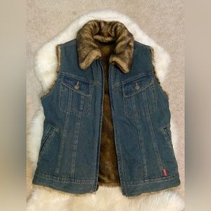 High Quality Beautiful Fur and denim vest. Can be dressed up or down. Worn once. Reversible.