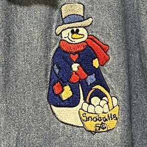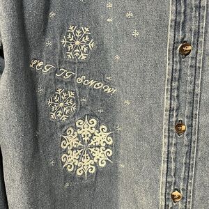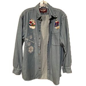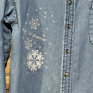 Denim Gear Women’s Long Sleeve Denim Button Up Shirt Embroidered Snowman Size S