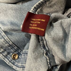 Made of 100% cotton denim fabric, this shirt is easy to care for and machine washable. It also has a pocket for added convenience. This button-up shirt is ideal for travel, dinner out, casual wear, and Christmas parties. Available in size S, this classic piece is a must-have for any winter or fall wardrobe.