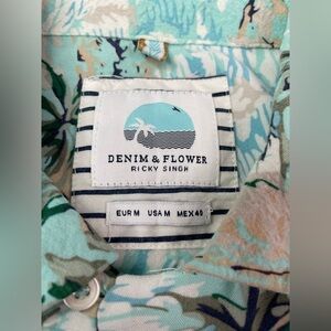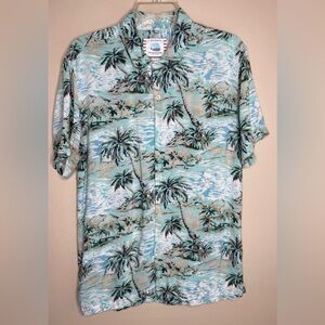 Denim & Glower Tropical Palm Tree Print Men's Shirt Short Sleeve Size Medium