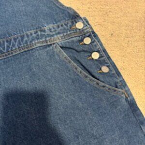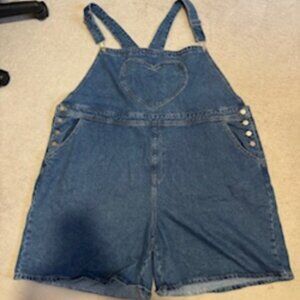 Stylish denim jumpsuit featuring a charming heart detail. Perfect for casual outings. Theres little to no stretch.