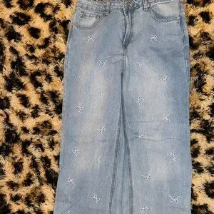 High Rise Denim jeans embroidered with Bows - never worn, but no tags