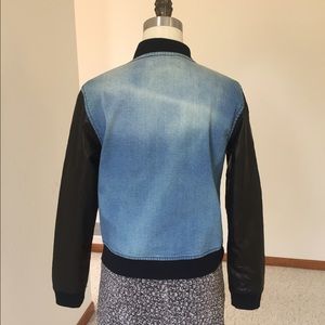 This denim Jacket with faux leather sleeves, looks trendy and fit