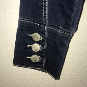 All Lower Brand Denim Jacket. Tags removed—Washed and worn literally once (not the right fit on me). Perfect condition. Working pockets, very stretchy for denim jacket.