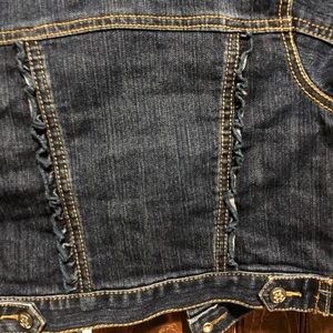 Super cute denim jacket with ruffle detail on the front and back! Size 4T