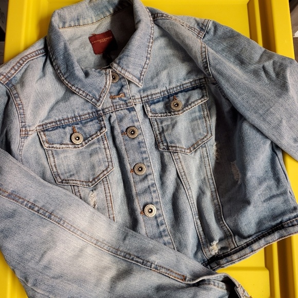 Fitting jean jacket by Highway Jeans, crop style & slightly distressed