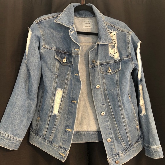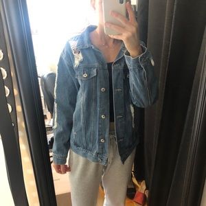 Great quality medium wash denim jacket with rips