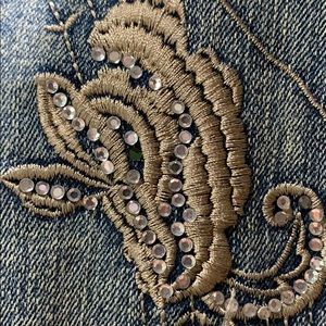 Embroidered and Diamond studded. Lace trim around neckline.