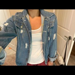 Distressed jean denim jacket, oversized fit