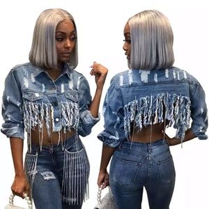 Denim jacket dripping in jewels. Not too much but perfect for Jacket season! You’ll love it! Follow me on ig @Entangled_llc