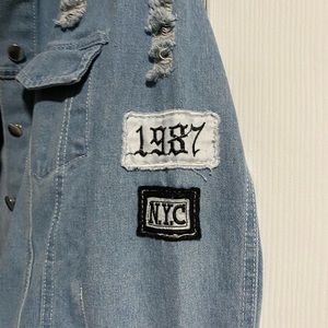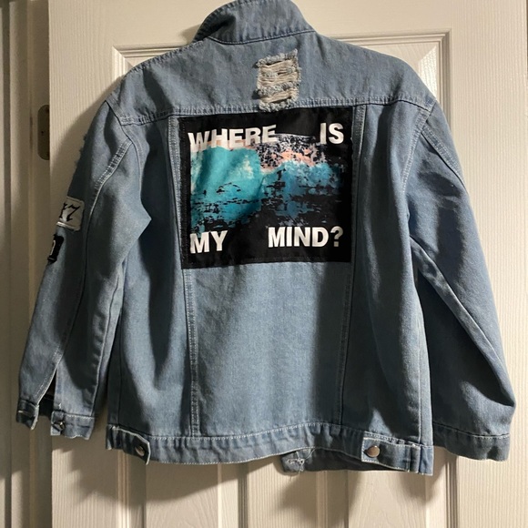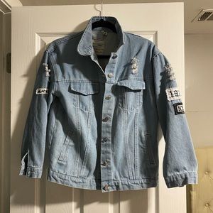 Denim jacket with patches, super cute & comfy, it just doesn’t fit me anymore. I hope someone else can love it! Fits like a 12-14!