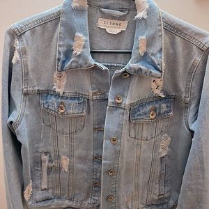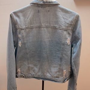 Ultra distressed denim jacket; rip style accents on front and back; medium size true to size; worn once.