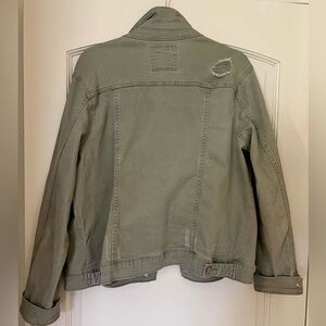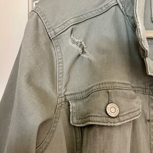 Slight distressed denim jacket. Has tons of stretch. Amazing condition. No longer fits me.