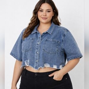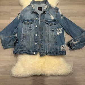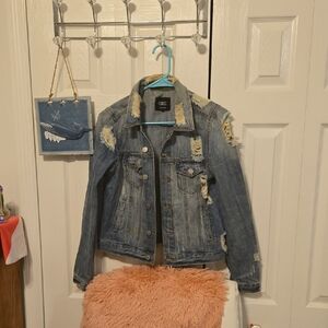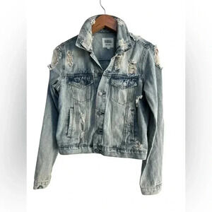 Women's Almost Famous Faded Blue Jean Jacket Distressed- Size L Juniors