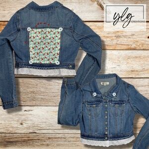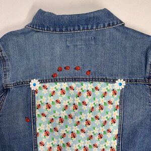 Denim Jacket Ladybug Red Blue Trucker Flower Applique Eyelet Trim Jean Junior L