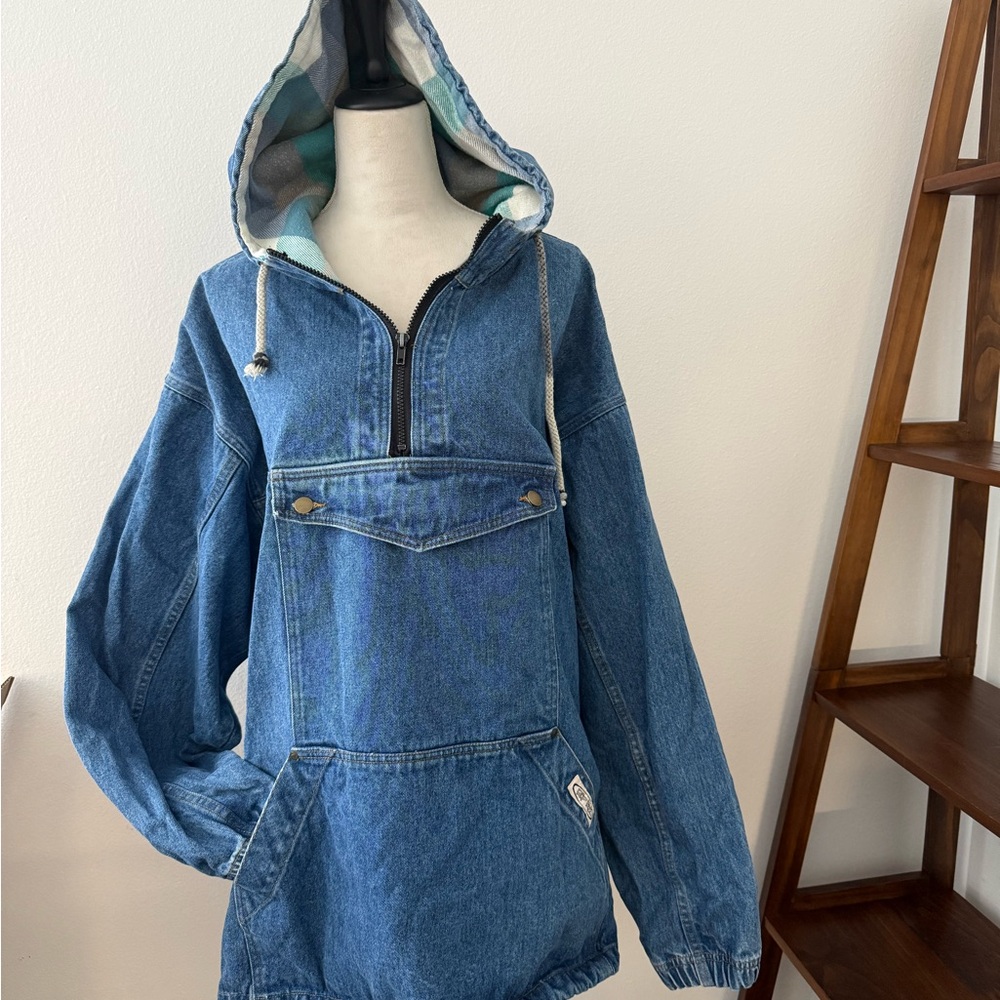 Stylish and comfortable blue denim jacket oversize. Perfect for casual outings. See photos with a measuring tape for the size.