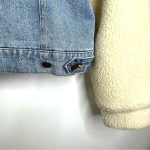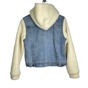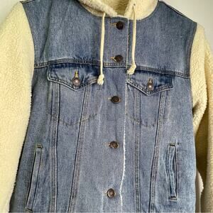 Denim Jacket Sherpa Lined Fuzzy Sleeves & Hood Large