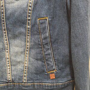 Denim Jacket Women's Size Large Cropped Stretch Long Sleeved Slit Pockets