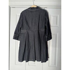 It is gently used and in excellent condition, ready for a new home. The classic trench coat design is elevated with a denim material, making it perfect for layering during transitional seasons.