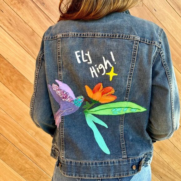 Denim Jacket painted and embellished with beads