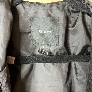 Black denim jacket with leather sleeves and hoodie all zippers work size medium