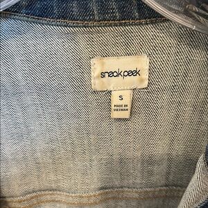 Stylish denim jacket with button closure. Features classic design and rolled cuffs.