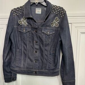 Denim Jacket Dark Gray with Sequin Bumblee Bee Patches and Studs