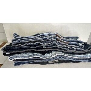 This lot of denim remnants is perfect for crafts and DIY projects. The pieces come with a variety of features such as waistbands, front pockets, and zippers. The multicolor scraps have a solid/plain pattern and are made of denim material. The lot contains 10 pieces and is suitable for hobbies and crafts.