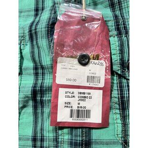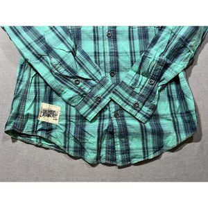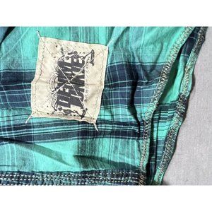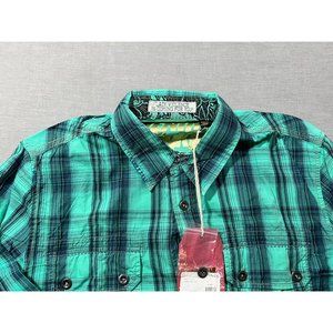Denim Junkie Button Up Shirt Adult Medium Green Plaid Pocketed Mens