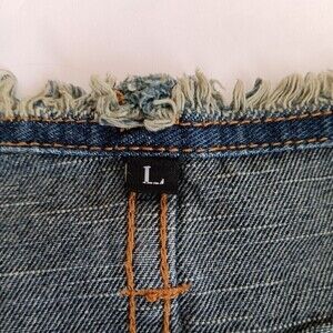 Denim "Karen" Mini Skirt w/Side Slits, Distress By GOGIB Jean - Size L (Juniors)