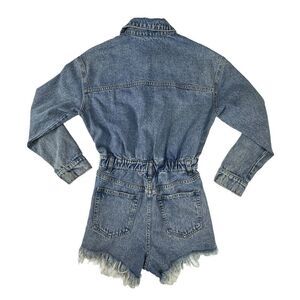 Denim Long Sleeve Romper Shorts Women’s Small Brooklyn Karma Journey Distressed