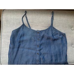 Denim Look tiny white Dot Spaghetti Strap Flounce Bottom Ruffle Tank Top Size XS