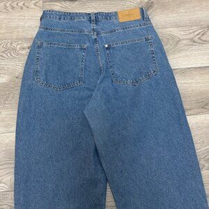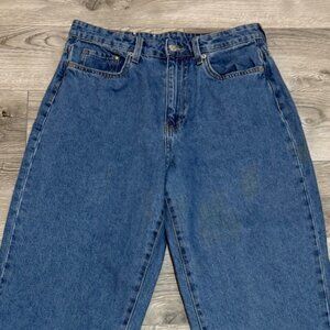 &Denim Loose Fit Mom Jeans Size 8 Ultra High Waist Ankle Length Blue Baggie