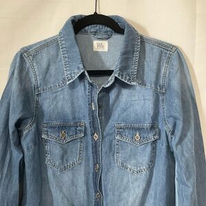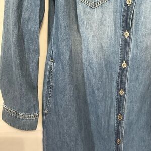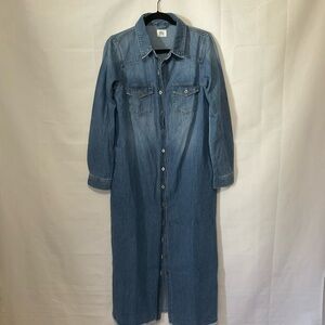 Stylish denim maxi dress perfect for casual outings. Features a classic button-down front and long sleeves. Ideal for a chic, laid-back look.