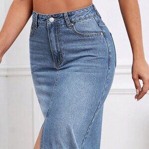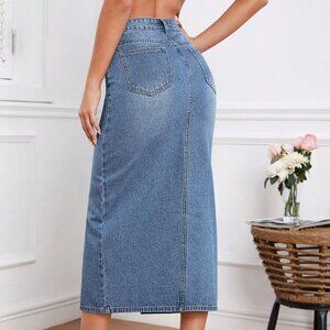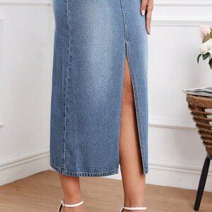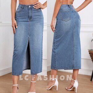 Denim Maxi Skirts, High Waist Split Thigh Denim Skirt, Boho Maxi Long Skirt