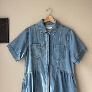Chic and versatile denim midi dress perfect for any occasion. Features a classic blue hue and a comfortable fit.