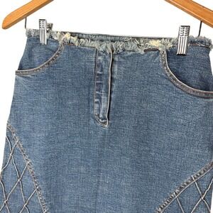 Denim Midi Skirt NWT Women's Size 5/6 Quilted Funky Mid Length Fringe Med Wash