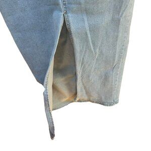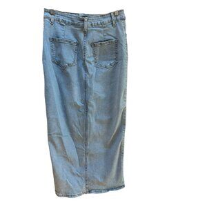 Denim Midi Skirt With Front Slit Blue Cotton Blend Stretch Boho Festival Size M