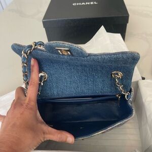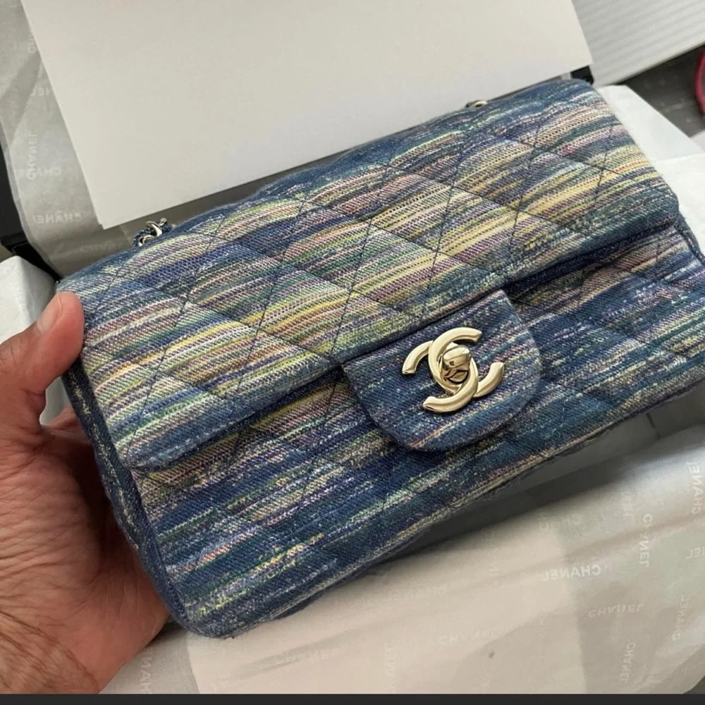 Rectangular denim mini. With box dust and authenticity card. Excellent used. Multicolor with gold hardware