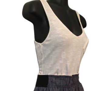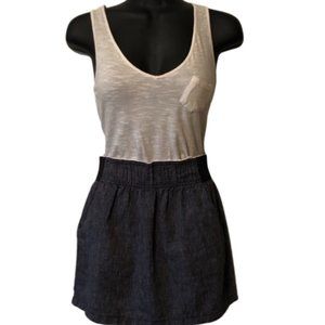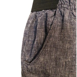 55% Linen 45% Cotton 2 Side pockets Spandex at waist Cotton top with small pocket
