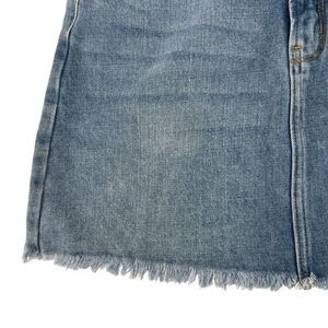 Denim Mini Skirt Size M Medium Wash Blue Jean Frayed Hem Just USA Brand Classic