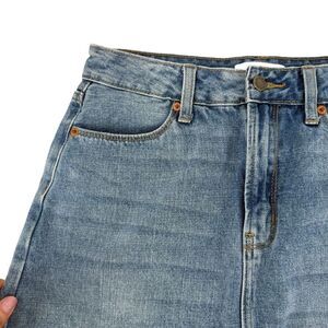 Denim Mini Skirt Womens Medium Wash Blue Jean Denim Frayed Hem Just USA Brand Skirt Classic American Casual