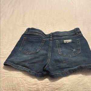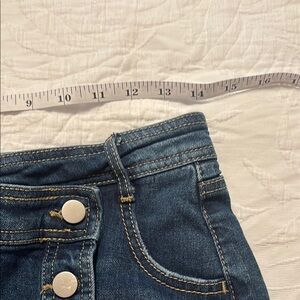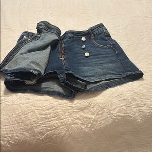 Adorable denim mini skort with a chic distressed look. Perfect for casual outings.