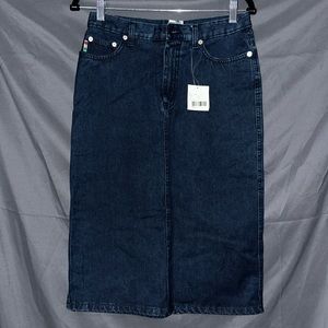 Vintage Moschino denim pencil skirt with high back split. 100% cotton no stretch new with tags in great condition except mission button for the closure. I’m currently looking for a Moschino button but have it repaired but will to sell as is