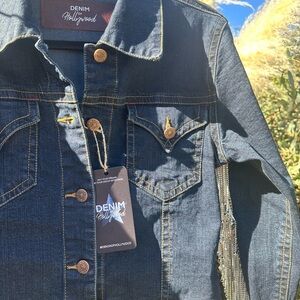 Denim Of Hollywood Custom Rhinestone Fringe Denim Jacket StageCoach Coachella