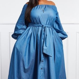 Denim Off Shoulder Maxi Dress