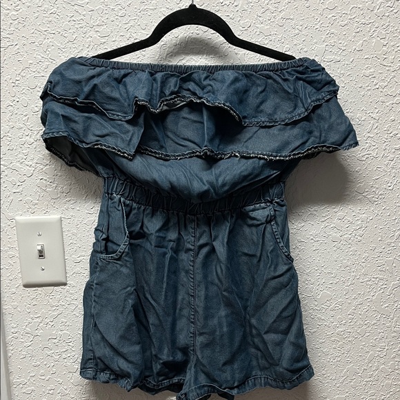 Denim Off-Shoulder Ruffle Top romper