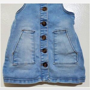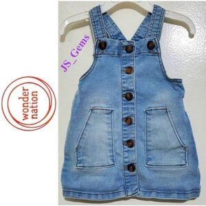 WONER NATION 18M kid super stretchy button down light blue whitewashed jean jumper dress bibs. Features sleeveless, 2 button adjustable shoulder straps for growth, front chop pockets, 6 front brown button down, & a soft super stretchy fabric. Approx. arm pit to arm pit 9.75”, bottom 13”, front body 13.5”T without straps, & back body 13.5”T without straps. Ask any questions before purchasing. Enjoy buying from an Ambassador II. Same or Next Day Shipping 🎁 Make an Offer or Bundle to Save 😊💕 All sales final & sold as is