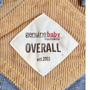 Genuine Baby by Oshkosh B'gosh denim overalls in size 9 months. Made of 100% cotton with a square neckline and sleeveless style. Features adjustable straps and waist, button accents, and embroidered details. This vintage overall set includes jeans and is suitable for casual or travel occasions. The design is inspired by classic American themes like the USA, farm life, and the 90s, perfect for a boy or girl.