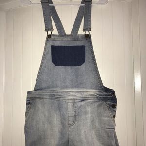 Sassy denim overalls with Faux front pocket, side pockets and can be worn with fall one piece turtleneck or Sunday Brunch T-shirt paired with Knee high boots! Worn a few times for photo shoot.